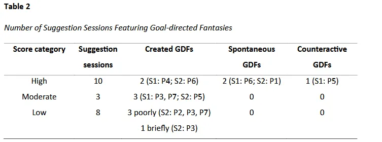 - High responses rarely involved intentional Goal Directed Fantasies (GDFs), mediums almost always involved intentional GDFs.