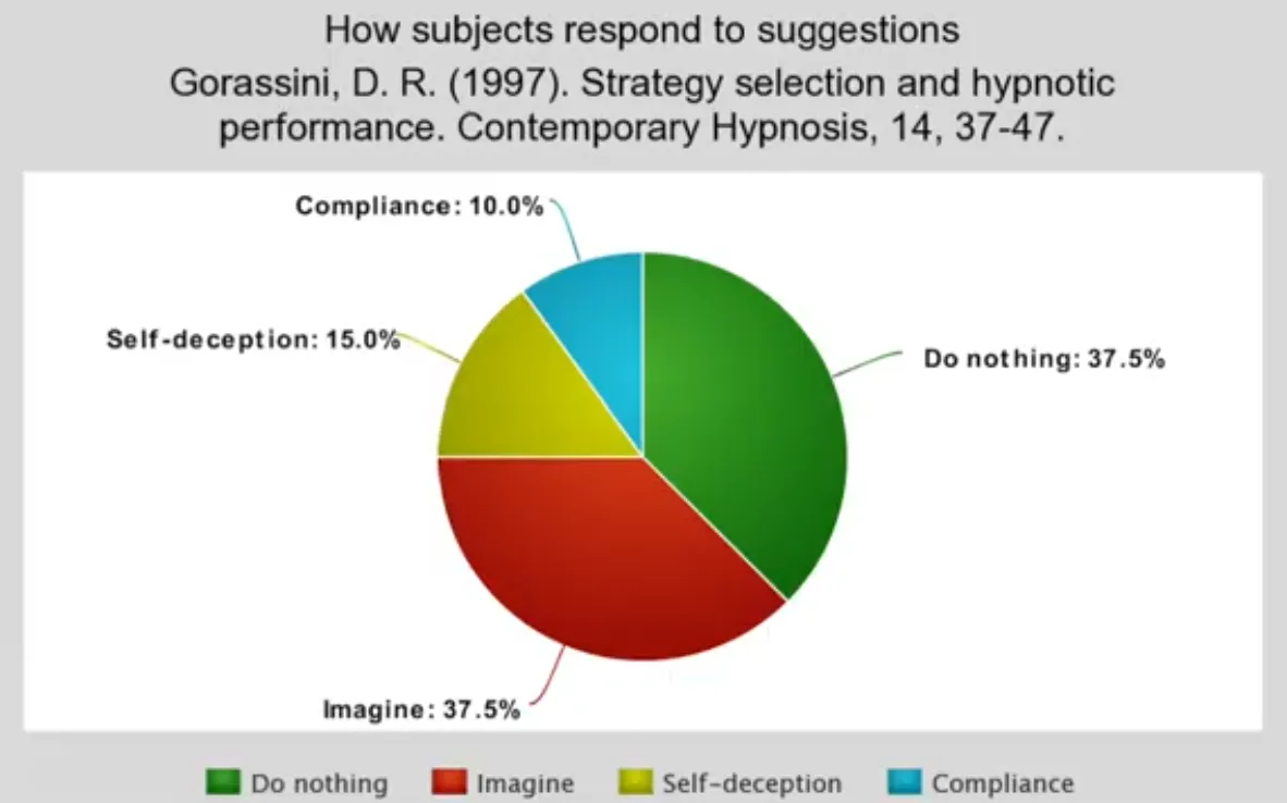 Despite this - they can detect if someone is responding to a suggestion… they can distinguish between what suggestions they are acting upon. “An induction on itself it provides very very little.” Technically, it provides a slight increase in suggestibility. However, coaching EXERCISE also works just as well if not better than an induction.