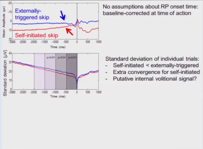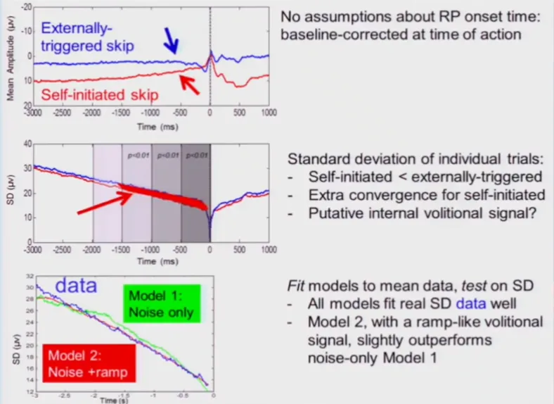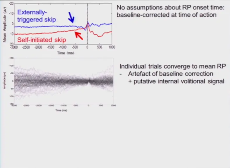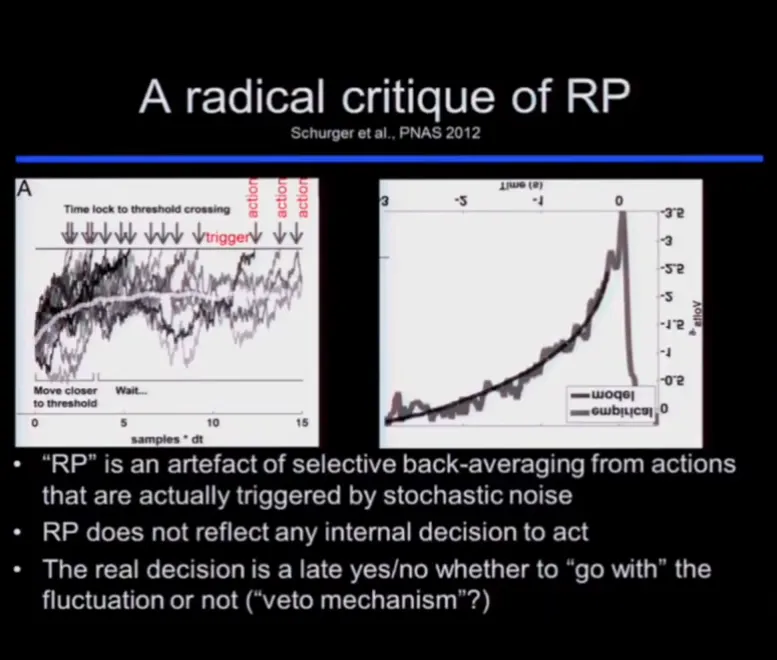 - If you average all the brain activity moving towards the readiness potential, it just looks like noise. This may have nothing to do with conscious intention.