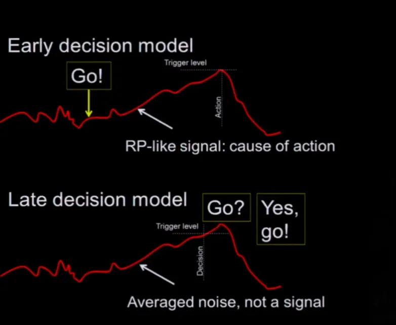 - Late decision model - “Go? Yes, go!” (The RP is just noise, not determinant of behavior.)