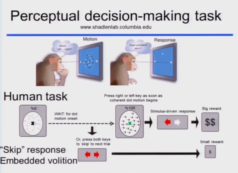 They’ll have the human push the left or right button depending on the direction the dots converge. (Uh, but for humans, they make it very boring. ) You can either wait or use a “skip response” by pushing both buttons at the same time.